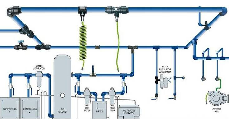Yeni yada yeniden düzenlenen bir tesiste basınçlı hava tesisatının boru yerleşimi (buhar, su v.s boru şebekesi ve elektrik bağlantılarından daha) öncelikli olarak planlanmalıdır; aksi takdirde, ana boru şebekesinin diğer boru şebekeleri ve elektrik bağlantılarıyla çakışmaması için, dolambaçlı yapılması gerekir ki; bu da, basınç kayıplarının artmasına yol açar.